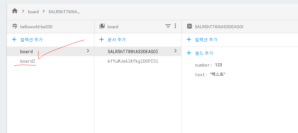 board2라는 컬렉션이 추가되면서 내용이 새로 생긴 것을 확인 할 수 있다.