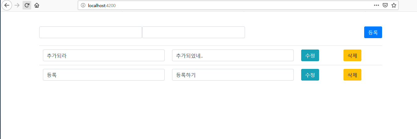 이제 app.component.ts에서 수정기능과 삭제 기능도 추가하여보자.