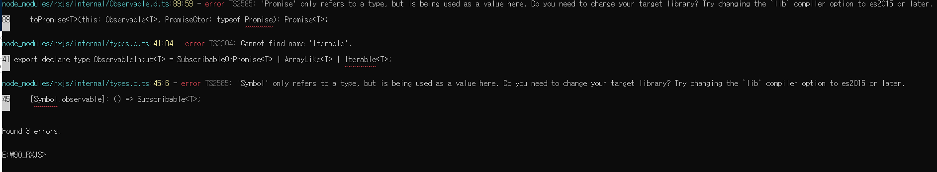 Rxjs 모듈을 다운받아서 사용할 때 간간히 만나는 오류이다..