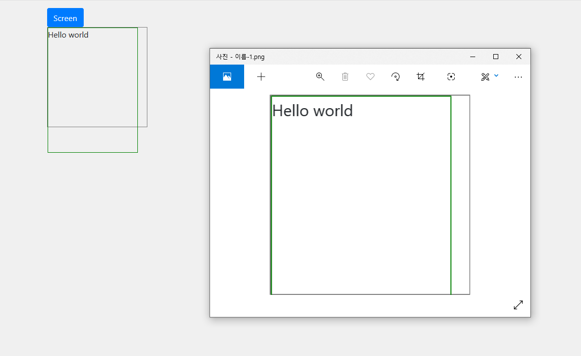 해당 테그는 안에 Hello world라는 텍스트를 가진 테그를 가지고 있는데..해당테그가 myCanvas보다 높이가 높은 것을 알 수 있습니다.