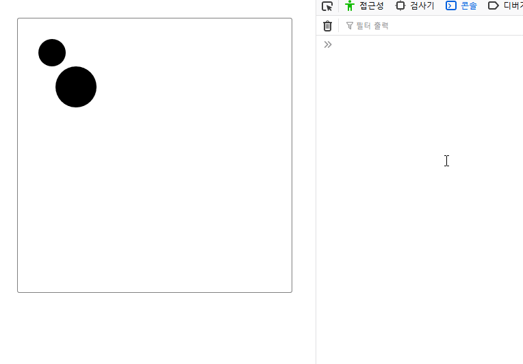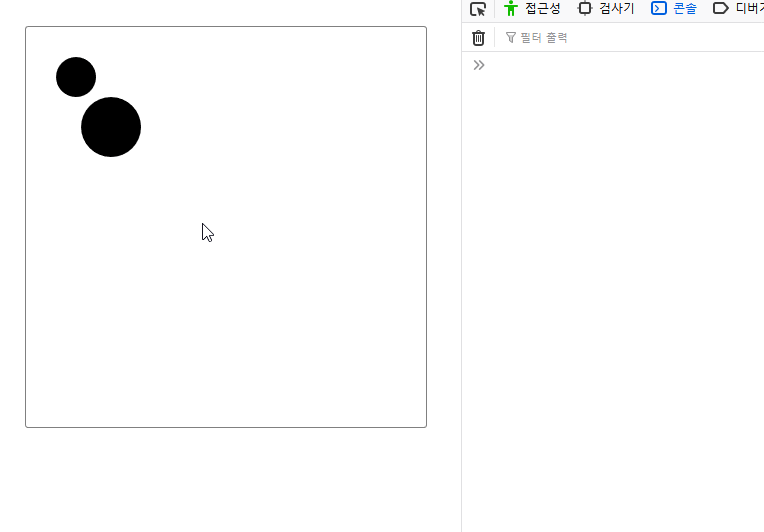 | 원 외부에 있는 경우 | 클릭한 지점보다 작다 | 반지름보다 크다 |
