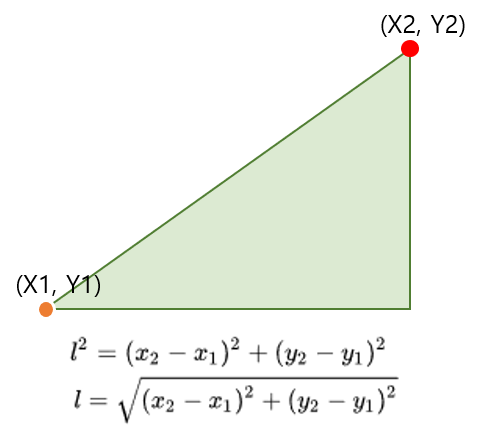 해당 내용은 중학교 교과과정에서 배우는 피타고라스의 정리를 사용하면 쉽게 가능하다.