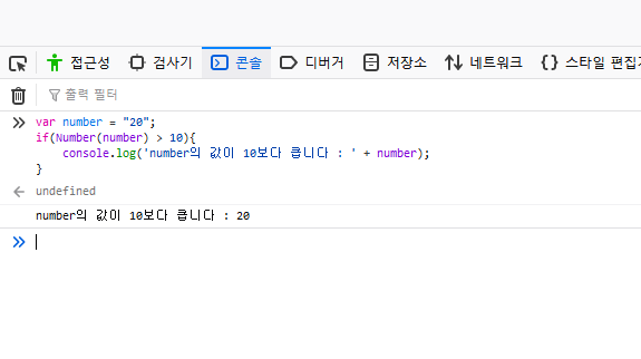 console.log('number의 값이 10보다 큽니다 : ' + number);
