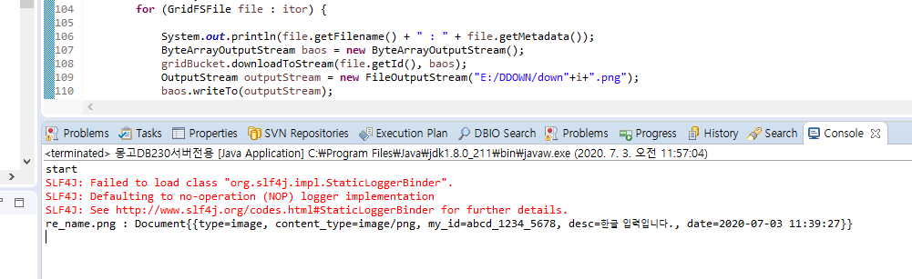 조회를 하고 난 뒤에는 각종 등록 정보를 가져왔으며, downloadToStream 메소드를 통해서 파일을 Byte스트림에 담아두었습니다.