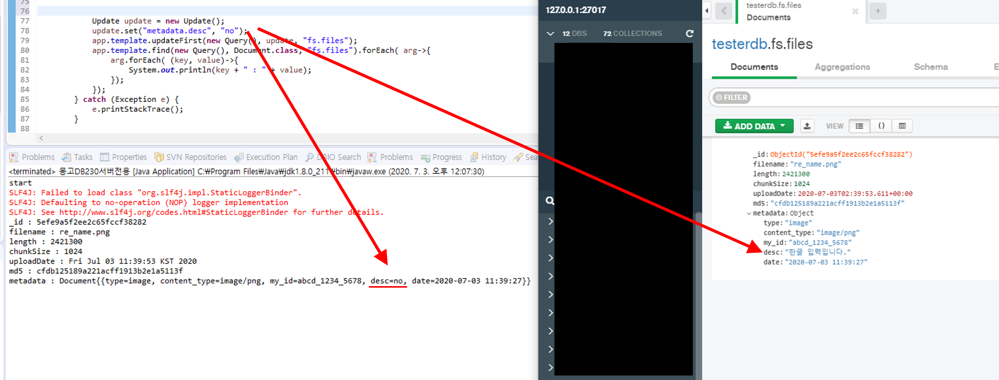 아래는 일반 Update 기능을 통해서 컬렉션의 meta정보를 바꾸어준 모습 입니다.