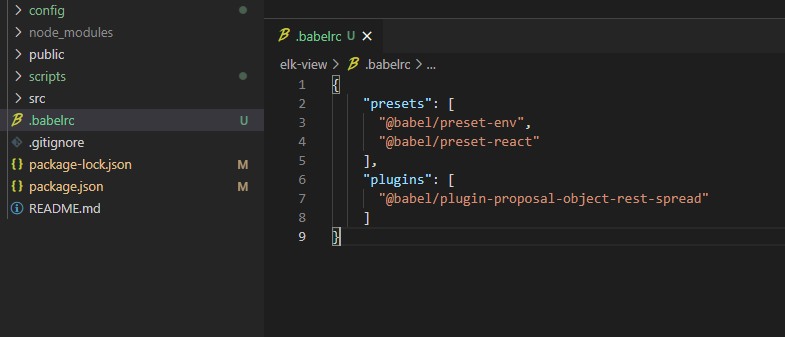 그리고 가장 최상단(root, npm start를 실행하는 구간)에서 바벨 설정파일을 추가하여 줍니다.