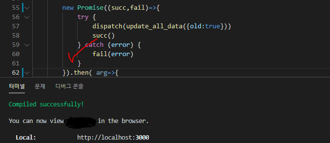55번째 9번줄은 new로 시작하는데 뭐가 오류지 하고 한참을 들여다 본 순간.. 아래 then함수 구간이 보였습니다.