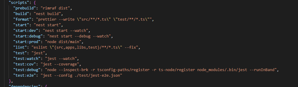 그리고 익스프레스 서버 보다 가장 좋았던 점은 @nest-js/cli를 설치하여 주고 나면 nest 명령어를 사용하여 각종 기능을 손쉽게 만들 수 있고, package.json에 빌드하는법, 개발모드로 동작시키는 법 및 린터같은 코딩스타일을 검증하는 도구가 포함된 파일을 받을 수 있는 점 이였습니다.
