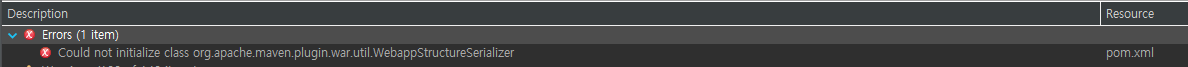 Maven 환경의 프로젝트 기반인 pom.xml 에서 볼 수 있는 오류 입니다.