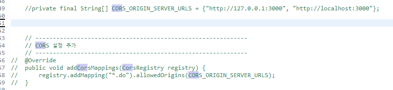 그래서 편하게 개발하려면 주석을 푸는 것 보다도 리엑트 프로젝트에서 프록시 설정을 해 주는 것이 좋을 거 같습니다.