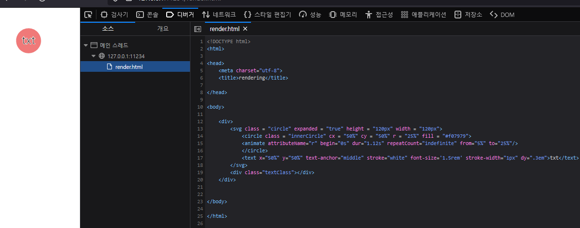 svg 엘리먼트로는 circle과 text 및 animate를 사용 하였습니다.