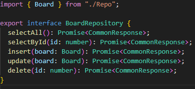 이렇게 만든 도메인 객체를 사용하는 레포지토리를 인터페이스(interface)로 구현을 해 줍니다.