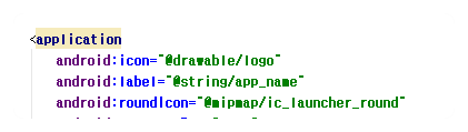 아래 그림처럼 android:icon 값을 변경하면 된다.