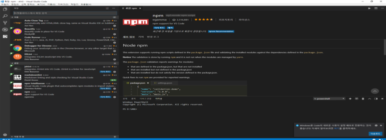 타입스크립트라던지 Node라던지..플러그인을 설치하면 왠만한 언어들의 자동완성 기능이나 오류검사도 잘 되는 것 같다.